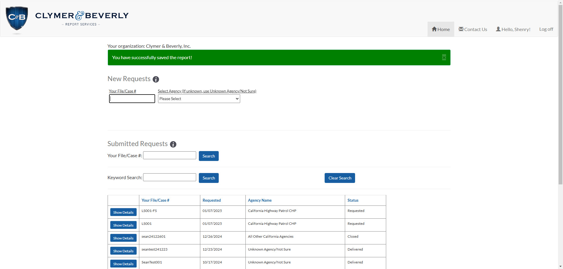 Once you submit your Request, Clymer & Beverly begins to deterine Report Jurisdiction, and get status and availability ASAP. We will update the status regularly, and contact you if we need any additional information, or find errors.